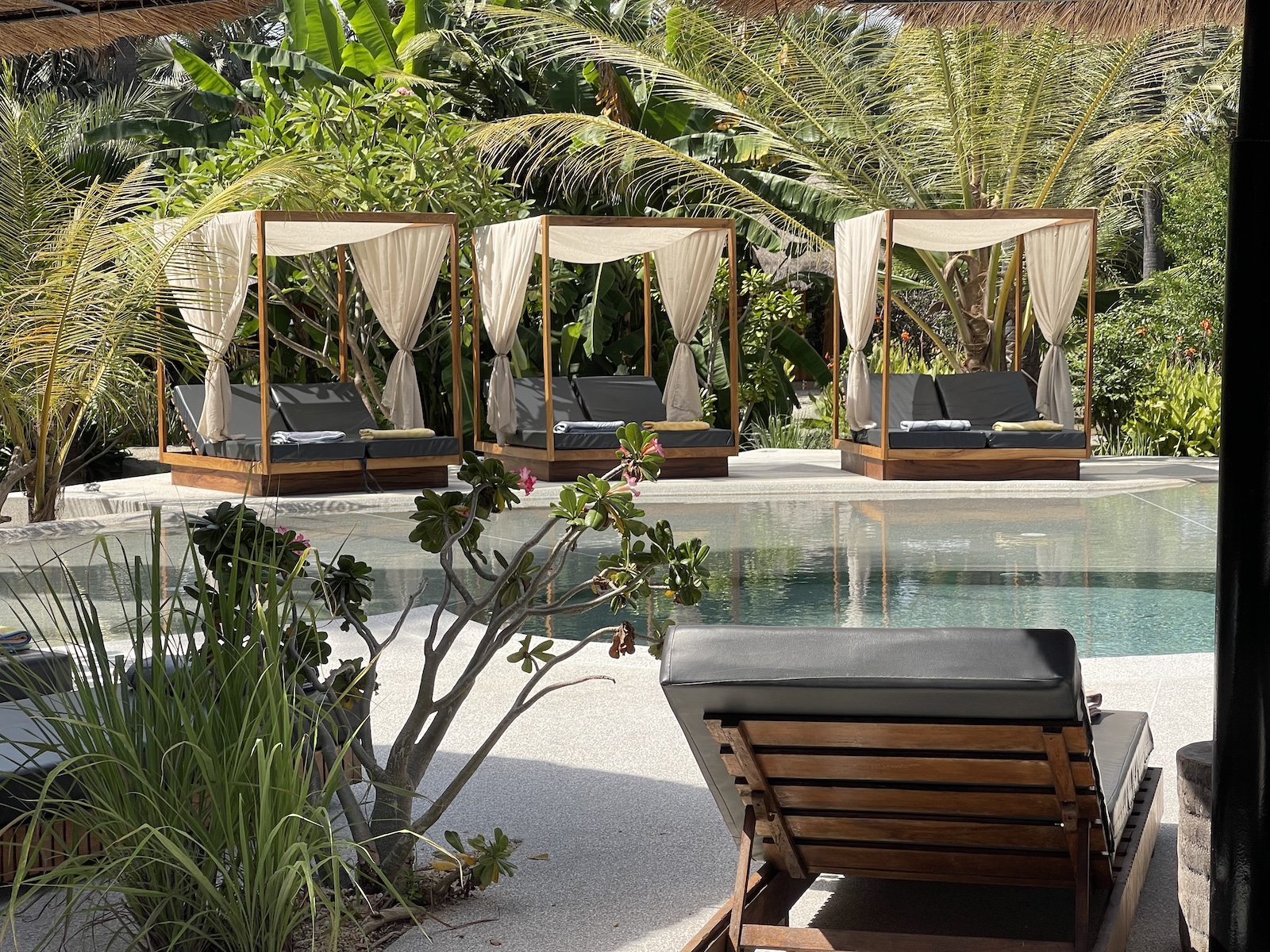 De la piscine, les allées vous conduiront à 5 bungalows dont deux familiaux où les enfants auront leur espace couchage bien à eux. Petite terrasse privée pour un dernier verre avec les oiseaux avant le coucher.